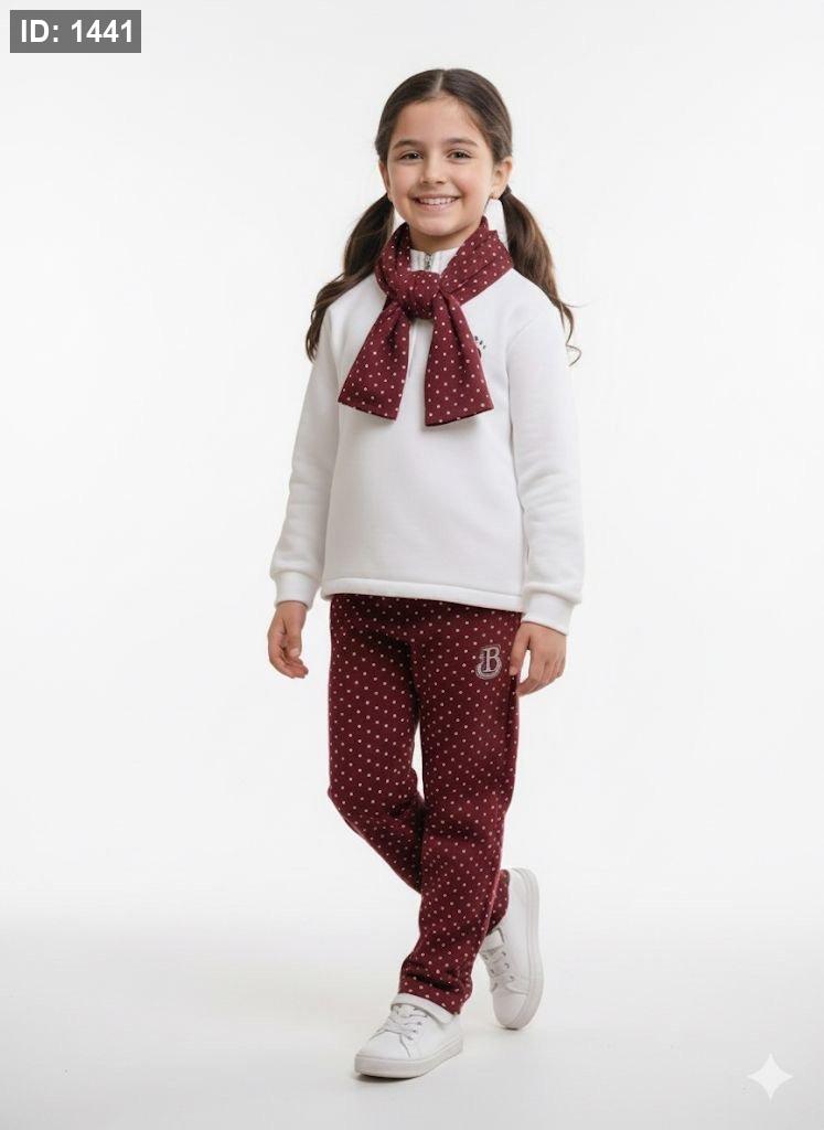طقم قطعتين مع لفحة مكفول مبطن بناتي