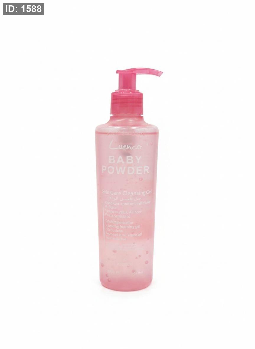 جيل غسول الوجه هو منظف لطيف للبشرة مصمم لتنظيف الوجه بعمق مع ترك رائحة ناعمة ومنعشة تشبه رائحة بودرة الأطفال. يساعد في إزالة الأوساخ، الزيوت وفضلات المكياج دون أن يسبب جفافًا للبشرة، مما يجعل بشرتك نظيفة، منتعشة ورطبة بعد كل استخدام.
