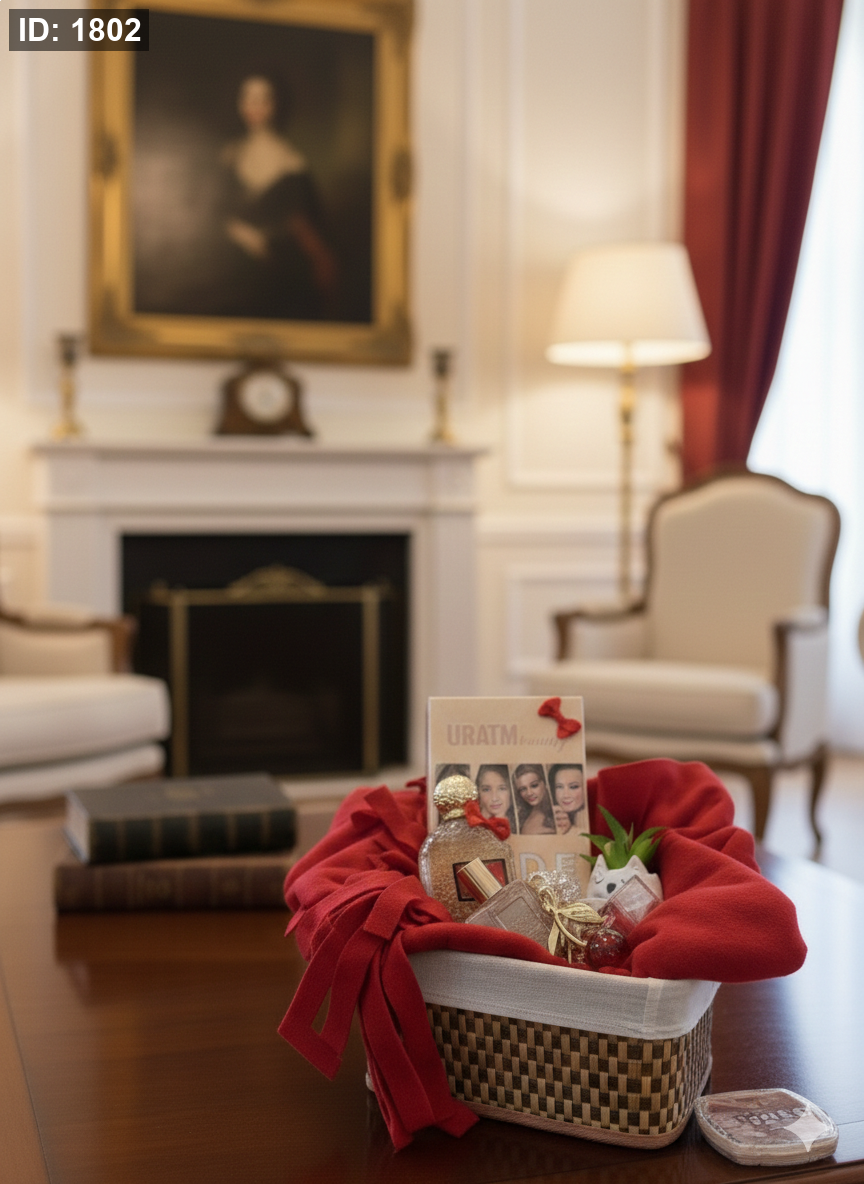 تتكون هذه الهديه من دفتر مكياج و وشاح أحمر وعطر فرموني ومسك القرشي وتحفة ورد الصبار ومدالية كرزة و اسوارة و ملمع شفاه وسلة