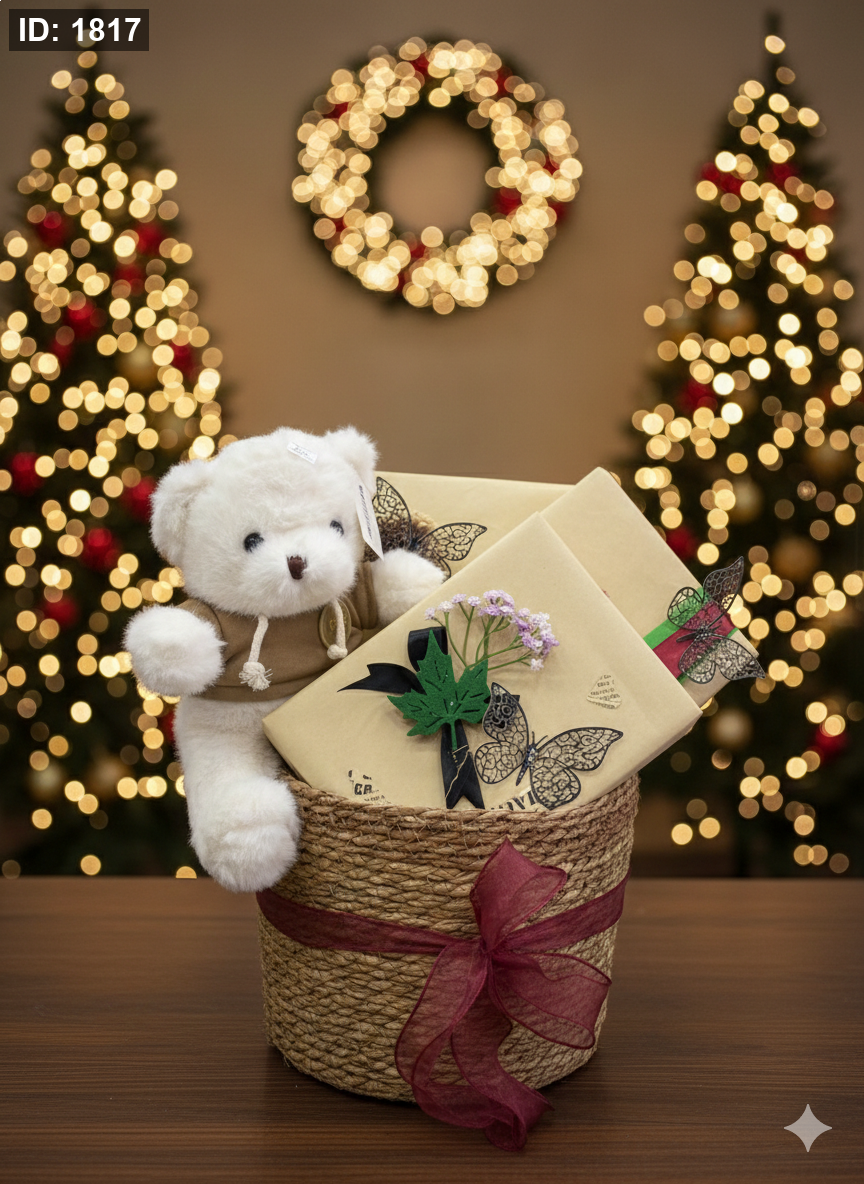 تتكون هذه الهديه من دب و سلة قش و بجامة ستان عرايسي و بكج كريمات مع بكج عطور