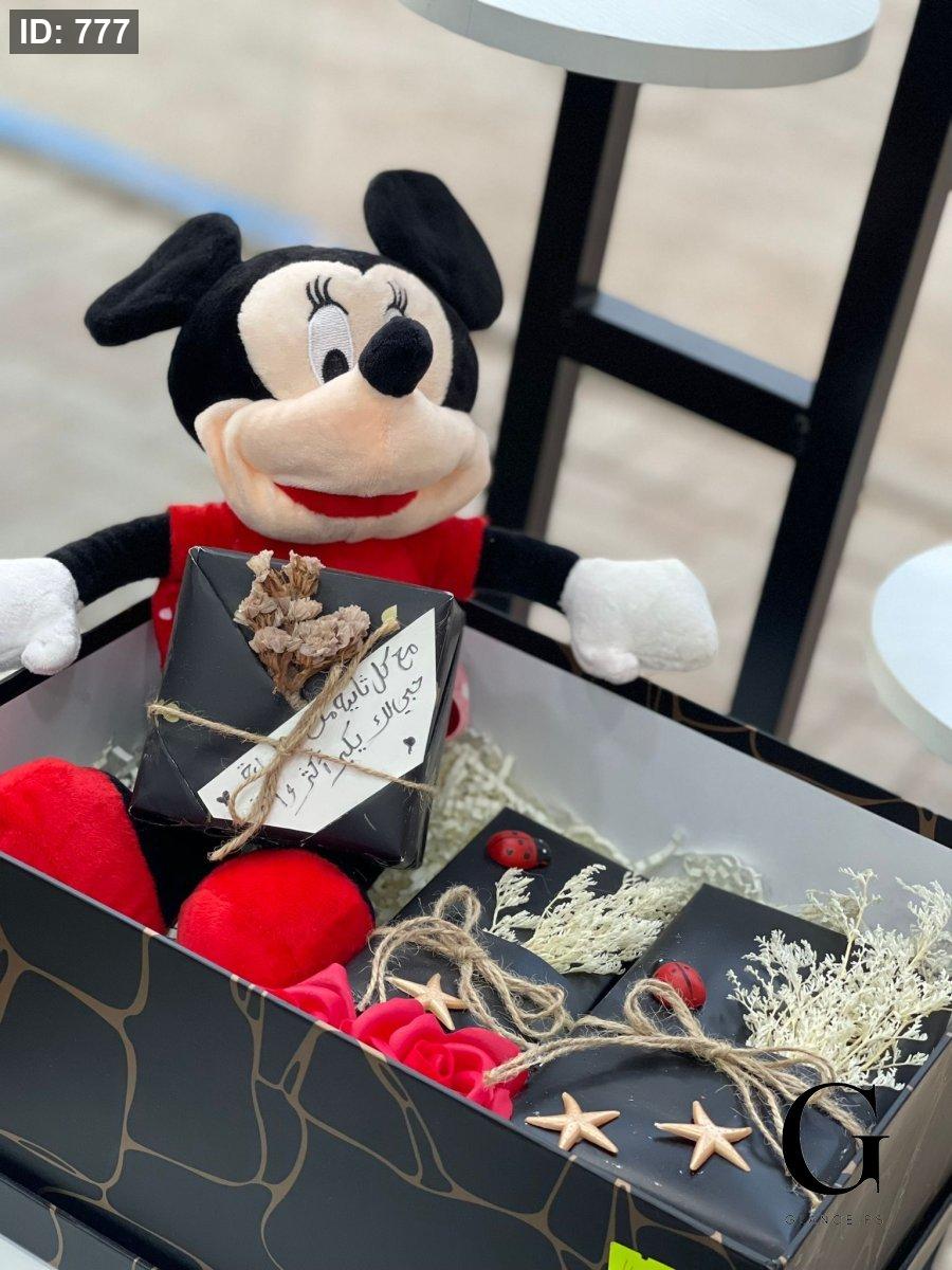 تتكون هذه الهديه من عطر فوّاح ذو رائحة مميزة و ساعة ستاتي مكفولة اللون و عطر Zaragoza للشعر مغلف باللون الأسود الراقي مع دبدوب ميكي ماوس و صندوق أسود